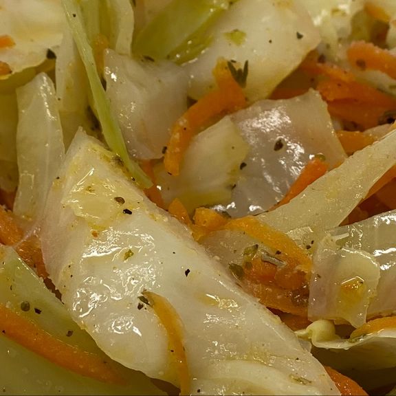 Steam cabbage and carrots with dried herbs and spices. Medium portion feeds 12-15 persons.